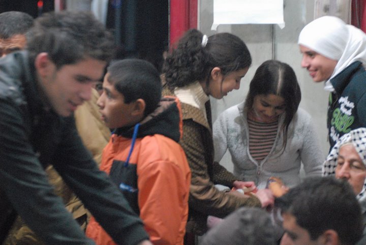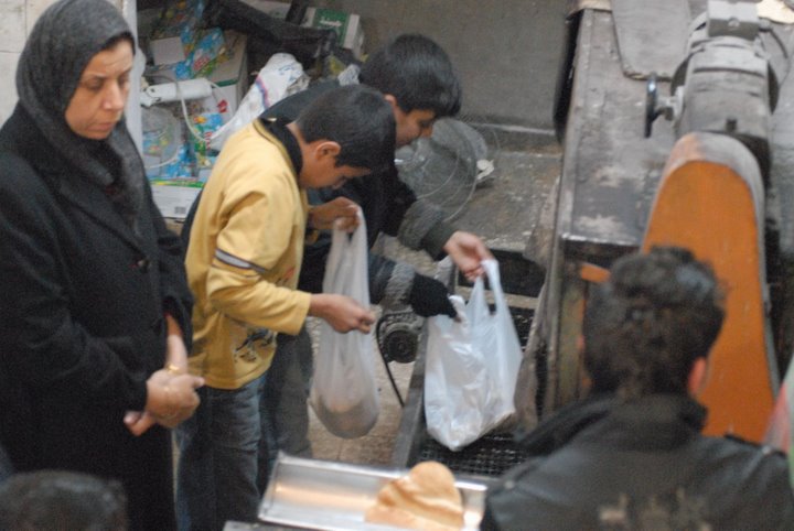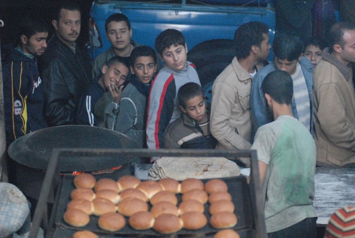 I stopped by Al Shanty Bakery in the middle of Gaza City. It is one of the biggest bakeries in Gaza and provides tens of thousands with bread. Hundreds of people were crowded outside the bakery in a very long, long line waiting for bags of bread, which is running out in Gaza.