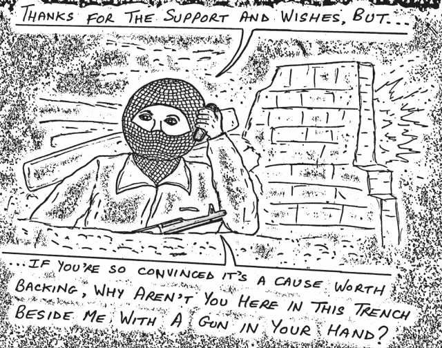 | Support the troops, any troops. Just don’t become one yourself. It’s dangerous. |