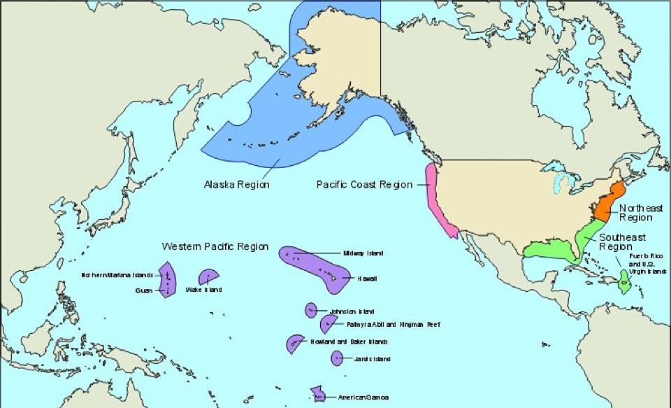 We have a number of possessions in the Pacific, formally called US Minor Outlying Islands, around which we claim EEZs. Here’s a map showing them: