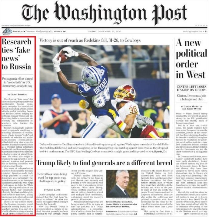 This kind of renewal of the 50’s McCarthyism was carried out on several fronts, one of vital importance being referred to the alarm regarding the proliferation of ‘false news’. The Washington Post published an article on November 24, citing the findings of an organization called Propornot, an anonymous group that drew up a list of 200 media devoted to ‘Russian propaganda’ and ‘false news’.