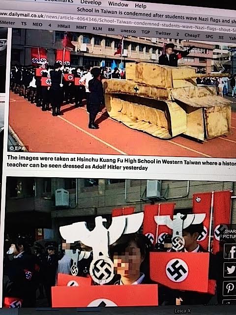 At the end of December 2016, both Taiwan and the world were shaken to the core, when images appeared in the local press and online, depicting students parading in Nazi uniforms proudly raising their hands in salute, an act banned in most countries of the world. Mail Online reported: