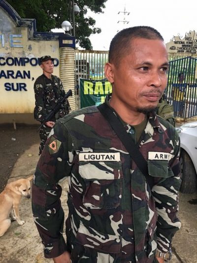 “The terrorists began using captured women as sex slaves,” explained Major Malvin Ligutan, standing in front of a temporary military base in Saguiaran.