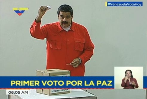 President Maduro was the first to vote, casting what he called “the first vote for peace”.