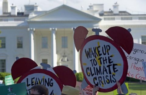 Climate protesters outside of White House. (Photo Susan Walsh for AP.)
