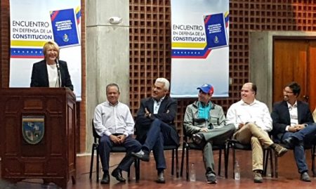 Luisa Ortega in a forum “in defence of the Constitution” surrounded by opposition leaders. The three figures from the right are Freddy Guevara, Julio Borges and Henrique Capriles.