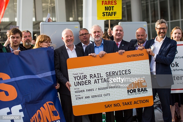 Jeremy Corbyn joined an RMT protest on “Transport Tuesday”, August 16, 2016, in London (Getty photo)