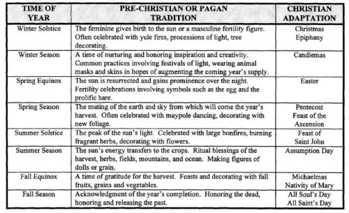 ?Pagan festivals chart: [From The Dark Side of Christian History, Helen Ellerbe]