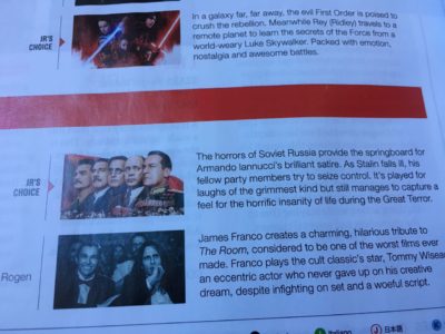 Seriously, is this the kind of language one would expect to encounter on the pages of a flagship airline magazine which is promoting a movie?