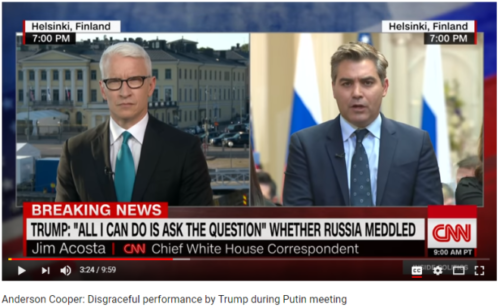 They really should think about moving CNN off-air as it affords the opposition unprecedented access into the Trumanite-cheerleader set at the height of their real-time disarray, railing against the treason our POTUS (how many have denied them as their own?) displayed on foreign soil (while remaining oblivious to the treason they spew daily against our government from NYC).