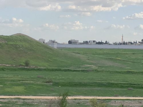 We are literally licking a huge concrete wall. Behind it is Syria, clearly visible, beautiful.