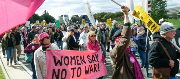 Last weekend, we participated in the Women’s March on the Pentagon, a successful action designed to build on the women-led movement against militarism and imperialism. Cindy Sheehan, who called for the march, stated explicitly that this was not a get out the vote event, as the last Women’s March was, and condemned both major parties for their support of war and militarism. She explained that war is a women’s issue because of the rape, violence, displacement and murder of women in countries that are occupied by military forces.