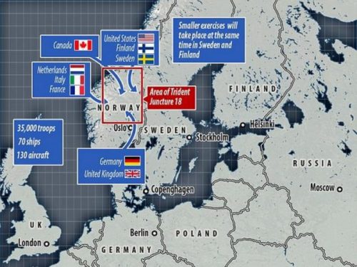 The location of the exercise is designed to send a message to both Russia and China. NATO Naval ships will enter the Baltic Sea, where Russian military planes fly, and be placed off the coast of Norway where they could cut off the transportation of goods between Russia and China and the European Union though the Arctic, called the Northern Passage.