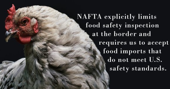 The USMCA undermines food safety and health by making it more difficult to regulate and inspect foods. It limits inspections and allows food that fails to meet US safety standards to be imported. Food and Water Watch states that it requires the US to “accept imports from Mexico with less scrutiny than from other countries. The deal even creates new ways for Canada and Mexico to second-guess US border inspectors that halt suspicious food shipments, which would have a dangerously chilling effect on food safety enforcement.”