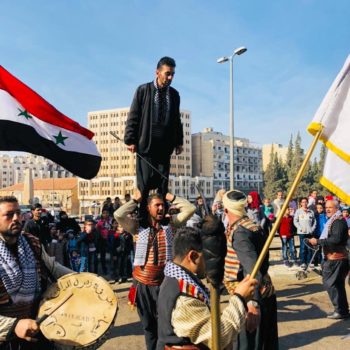 Not far from Julia Palace, reconstruction work is in full swing. And just a few steps away, a renovated mosque is re-opening. People are dancing, celebrating. It is Prophet Mohammed’s birthday. The Governor of Homs marches towards the festivities, with the members of his government. There is almost no security around them.