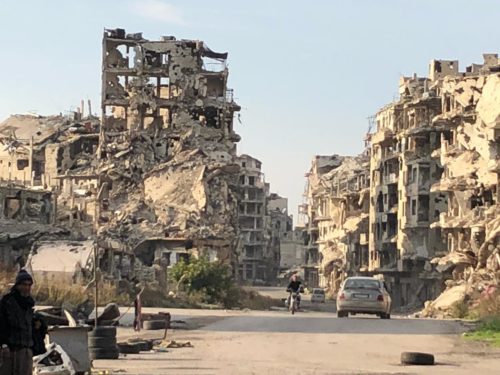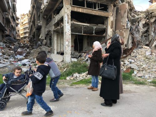 Families visiting their destroyed streets in Homs