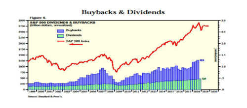 Stock buybacks increased by $330 billion; dividends increased slightly.