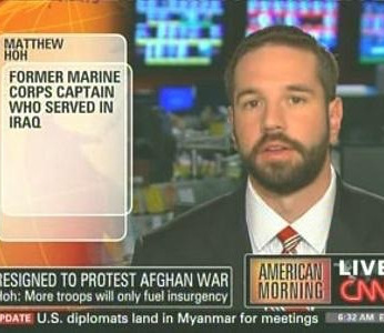 He (or rather his Taliban minders) refer to Veterans for Peace activist and ex-Marine Matthew Hoh, who resigned from his foreign service posting in Kabul interview, and in an interview with CNN‘s Wolf Blitzer in November 2009 read from his resignation letter: American combat troops are not defeating al-qaeda by their presence in Afghanistan. All they are doing is just fighting people who are fighting us because we’re occupying them.