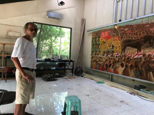 In the past, perhaps the most important Indonesia’s artist, 82-years old Djokopekik, had survived imprisonment, isolation and censorship. Now he lives with his wife and eleven dogs, on the outskirts of the historic Javanese city of Yogyakarta, on a vast compound, near, as he says, a ‘ghost infested river’.