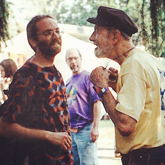 Pete was only in his seventies when we first met. He looked old — white people who spend a lot of time outdoors are especially prone to wrinkling — but he was still very energetic. I sent the lyrics to a song I had just written, back in 1995, about the bombing of the federal building in Oklahoma. His response was to call me at my mother’s house and invite me to perform at the Clearwater Festival. Years later I sent him another lyric, and his response was to send me back sheet music for it which he had just written, for me to use if I wanted to. But then, during the course of what many of us were calling the Global Justice movement, when I was getting a lot of interesting gigs in the late Nineties, I had a show with Pete Seeger at the Grassroots Radio Conference. When we met again there in Jefferson, New York, it was evident that Pete had heard of me before, but didn’t realize we had already met several times. (Not that I asked, but it was clear that he thought we were meeting for the first time.) Once again, years later, a check arrived in the mail for $100 and a note indicating he had just discovered my music, and requesting that I send him all the CDs I had ever recorded.