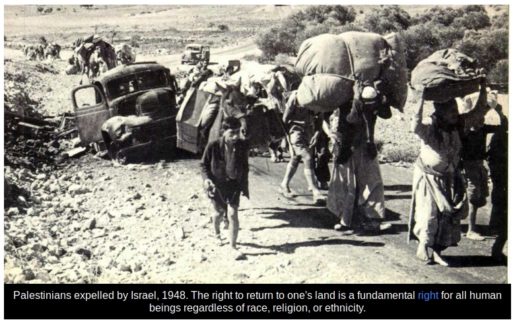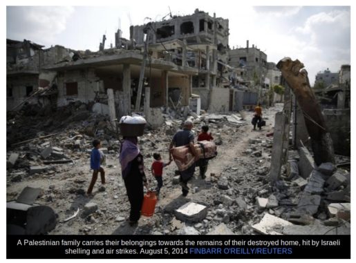 Over 70 percent of Gazans are from families that Israel forced out in its founding war to establish “the Jewish state.” Israel confiscated their homes and land and has prevented them from returning ever since. This violates international law.