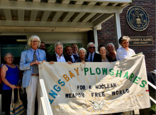 Bill Quigley, attorney for Elizabeth McAlister, began the closing argument by reminding the court of the bedrock religious belief “Thou shalt not kill.” He summed up his comments by noting that the atrocities committed by Hitler and Stalin would pale in comparison were the Trident nuclear weapons ever used. He said, “In 30 minutes after launch millions of innocent people would be killed.”
