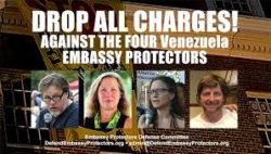 The Embassy Protectors Defense Committee is calling on the US State Department to drop the federal charges against us. On May 16, federal forces invaded the Venezuelan Embassy in Washington, DC in violation of the Vienna Convention and arrested four Embassy Protectors even though we were there with permission of the elected government of Venezuela.