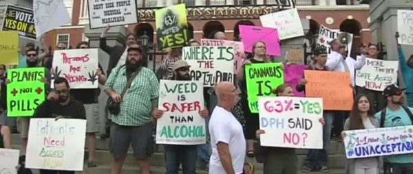 Screen Shot from YouTube Video, Protesters rally for safe access to medical marijuana.