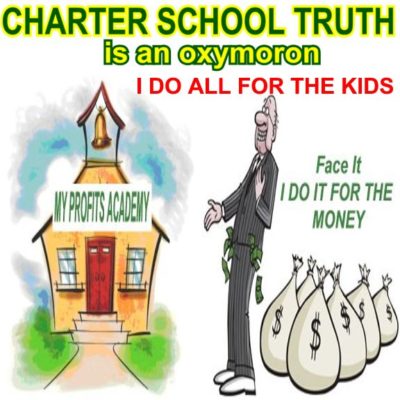Charter school advocates know that evidence, logic, and facts are not on their side. They know that they are in an endless uphill battle against those who defend public education and the public interest. They know that they have to work day and night to impose the self-serving claims of owners of capital on society and its institutions. They know that charter schools are a scam and that hundreds of charter schools close regularly and thousands perform poorly. Charter school supporters have even admitted for years that charter schools are not a panacea. But they will not relinquish their “legal right” to use charter schools to enrich themselves at the expense of young people. The drive to maximize profits with impunity is too coercive in the context of a continually failing economy. Charter school advocates will say any incoherent thing to preserve their ability to loot the public purse.