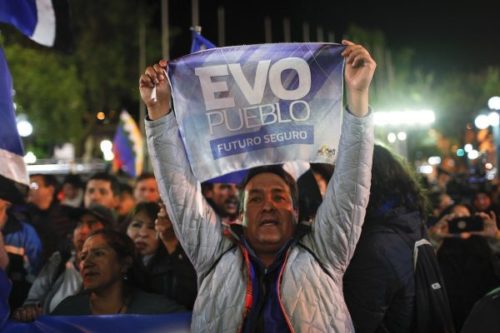 “A coup is underway, carried out by the right-wing with foreign support…what are the methods of this coup attempt? They’re not recognizing or waiting for election results, they’re burning down electoral courts, they want to proclaim the second-place candidate as the winner,” Morales told journalists.