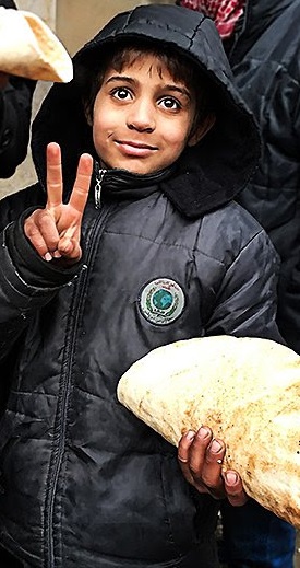 Child from Eastern Aleppo receiving food in the Jibrin reception camp, December 14, 2016