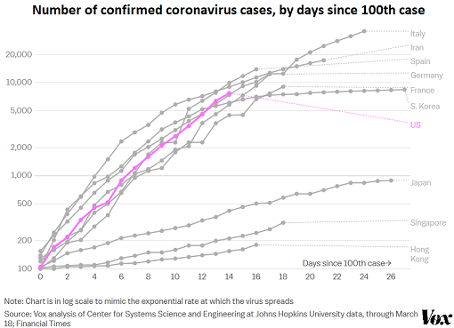 As you can see, the confirmed cases in the US are already more in line with Iran and Italy than with places like Hong Kong and Singapore, where the governments mobilized more quickly.