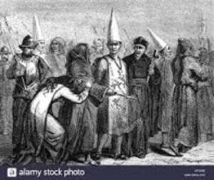 To be accused of heresy or some other violation by the Inquisition was the same as being guilty. An accused forfeited all rights immediately — the right to own property, to conclude any kind of binding business or legal transaction — and was subject to confiscation of all property, real and personal. Those who spoke in favour of an accused could be punished as abetting heresy with the same penalties. The only appeal was to the pope in Rome — very difficult to lodge when one was chained to the wall of some dungeon and anyone who acted on one’s behalf could suffer the same fate. It would go too far to explain all that could and did happen under this regime. The curious are referred here to Henry Lea’s multi-volume works; e.g., The History of the Inquisition in the Middle Ages. ((Henry C. Lea, The History of the Inquisition in the Middle Ages (1888) also The History of the Inquisition in Spain (1887).))
