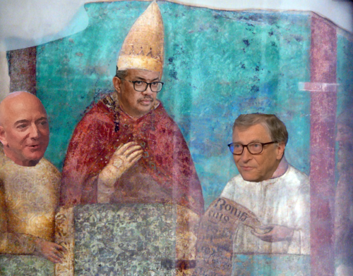 It does not matter that the word “infection” is used instead of “sin” or that the intelligent, fact-based suspicions of the official story about the “virus” are called “denial” and not “heresy”. Orwell would have called these doubts “thought crime”. The infection is just as invisible as sin. The definition of health risk lies solely at the discretion of the clergy, wearing white coats or HAZMAT suits instead of cassocks. Although neither Mr Tedros ((Tedros Adhanom Ghebreyesus, Director-General of the World Health Organisation, the secretariat of the World Health Assembly, located in Geneva, Switzerland.)) of the WHO nor a medical official can order an arrest, incarceration or torture, they can advise or instruct “the secular arm” ((The Inquisition was formally an investigating and policing institution with judicial but not enforcement powers. Condemnation by the Inquisition could incur penitential measures; e.g., compulsory pilgrimage, castigation, compulsory clothing marks (wearing a cross as a symbol of condemnation, lending another sense to the colloquialism: having “one’s cross to bear”) and incarceration. However, execution of the condemned was reserved to the State. Hence when the Church’s penitential measures were deemed inadequate, the “spiritual “ Inquisition could order the condemned remanded to the “secular arm”, a euphemism for the enforcement of the death penalty by the State.)) to act “in the interest of health” (i.e., in the interest of the Faith). As argued elsewhere recently, one of the world’s wealthiest individuals has assured us that we just do not know if we can ever prevent sin, whether we will ever have a chance of salvation, even if the auto de fé of vaccination is performed. ((See “The First Circle” by T.P. Wilkinson, April 24th, 2020.)).