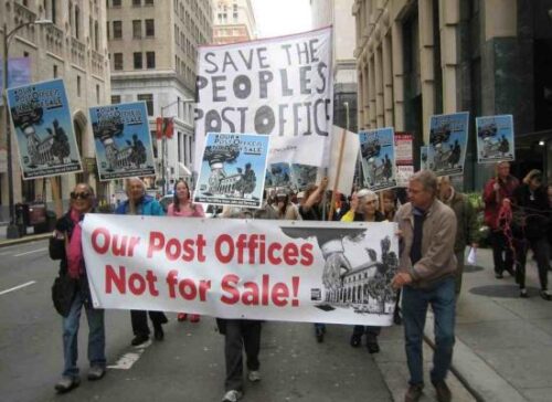 Under Obama, mail sorting and trucking were sub-contracted to private entities that pay their workers less. Activists began to protest in 2013 by delivering petitions and occupying post offices. In Berkeley, CA, people occupied the main post office for 33 days to prevent the historic New Deal Era building from being sold. This was part of a year-long successful campaign that gained tremendous public support, media attention, and support by local and state elected officials.