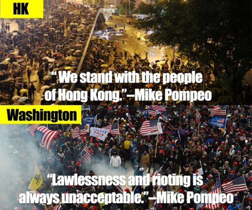 Wei Ling Chua, author of Democracy: What the West Can Learn from China, commented that “unlike US government trained Hong Kong terrorists, Trump supporters did not use arrows, fire bombs, throw stones, or attack the public who expressed different opinions.”