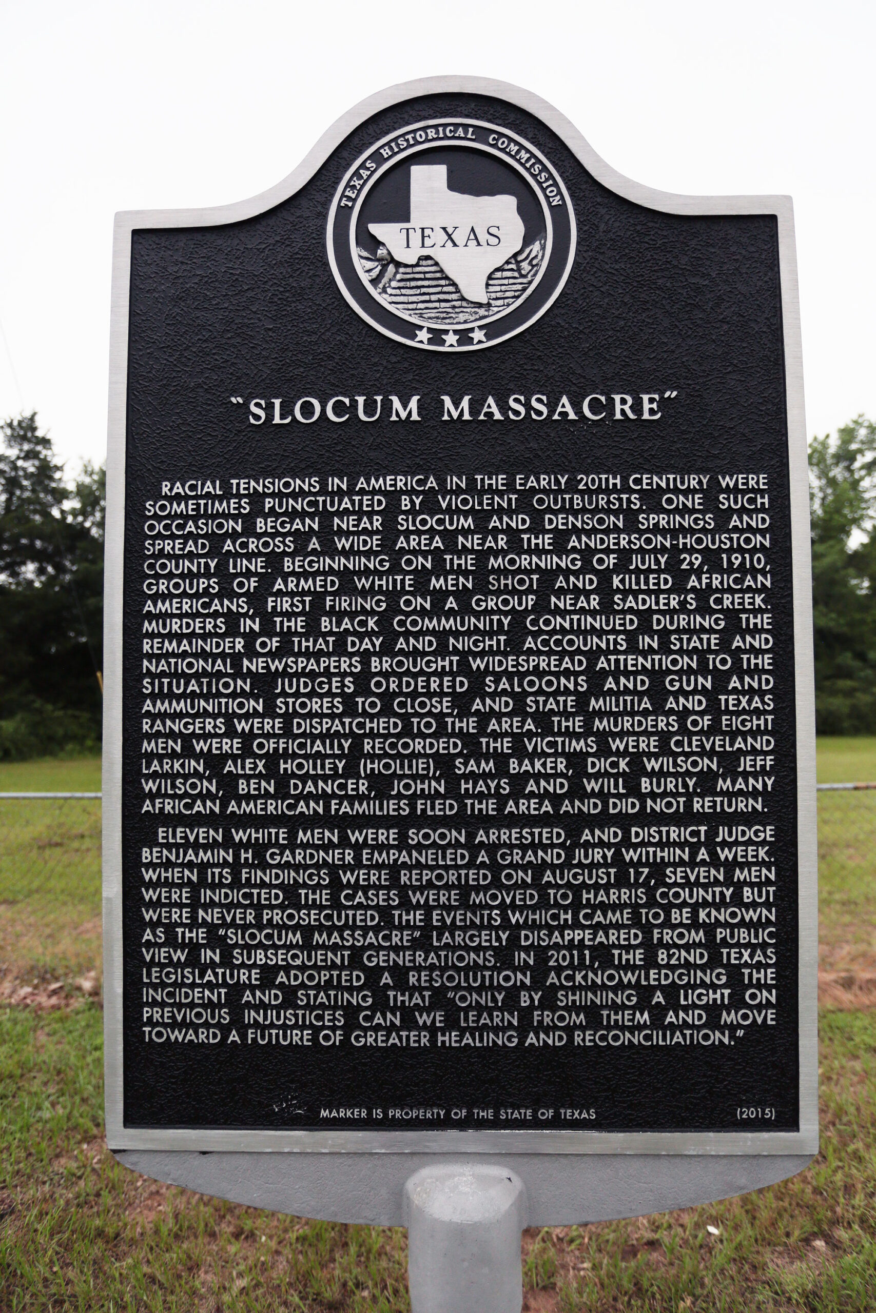 Jimmy had taken some heat in the press for his straight-shooting, and he was upset with me. And when we met that day in late December, he let me know this in no uncertain terms. At that point, however, the marker was secured. Constance—a descendant of victims of the atrocity—and I had won the argument, so we could be magnanimous. I let Jimmy air his grievances without response or complaint. In fact, even though the Anderson County Historical Commission had fought the Slocum Massacre historical marker application tooth and nail, I even agreed to write a short piece for the Palestine Daily Herald thanking Jimmy and the commission for cooperation that had been virtually nonexistent.
