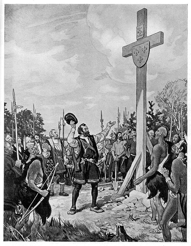 On 24 July 1534, French navigator Jacques Cartier voyaged to the Gulf of Kaniatarowanenneh (River of the Mohawks, St Lawrence) and planted a cross on the shore of Gaspé. It signified claiming possession of the territory on behalf of the king of France, Francis I. Donnacona, chief of Stadacona (Québec city), was unhappy at this effrontery. Surmising this, Cartier lied and downplayed the significance of the 9-meter (30-ft) cross.